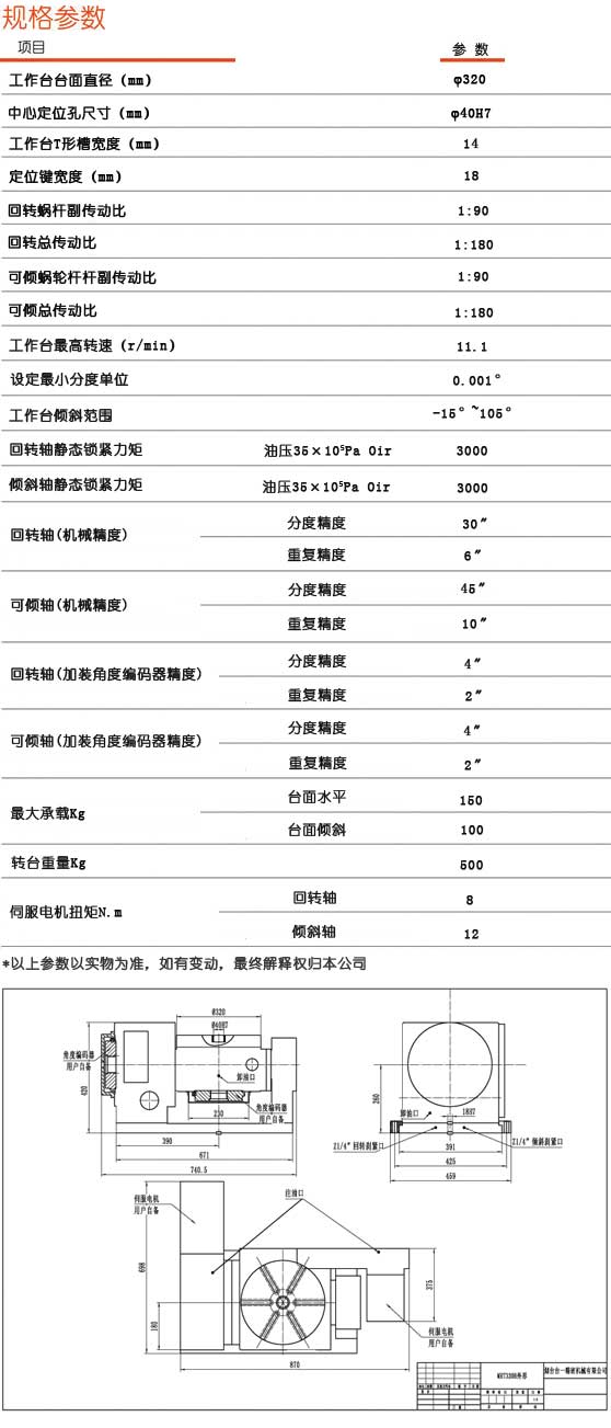 (T)傾覆,回轉(zhuǎn)兩周轉(zhuǎn)臺(tái),配合工作母機(jī)可做五軸同動(dòng)加工